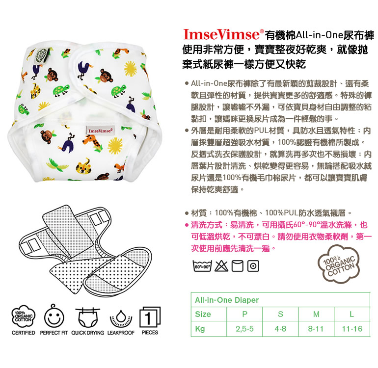 瑞典 ImseVimse有機棉All-in-One尿布褲(動物園)