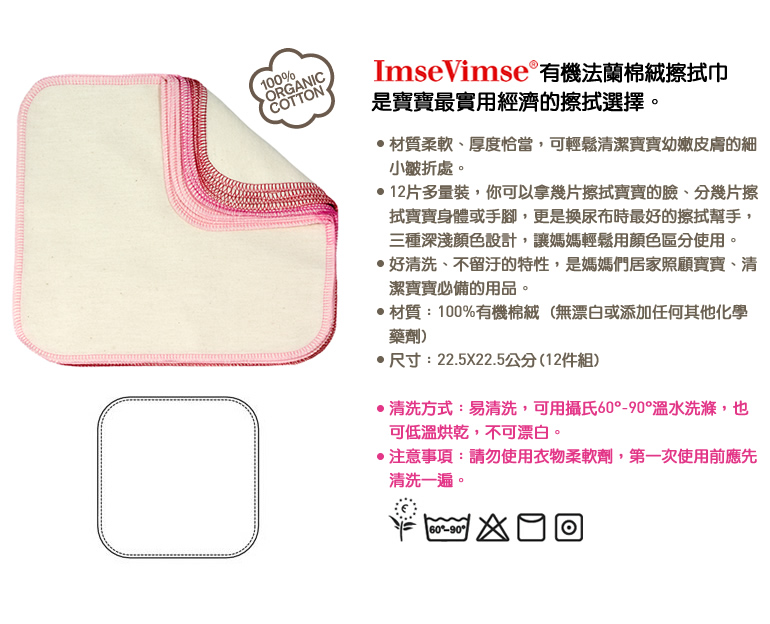 瑞典 ImseVimse有機法蘭棉絨擦拭巾(玫瑰粉/12件組)