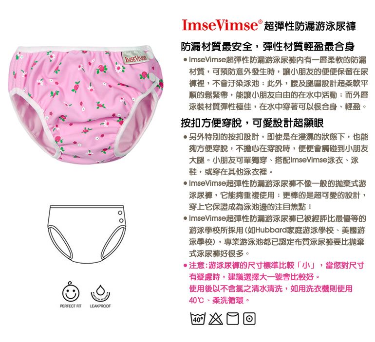 瑞典 ImseVimse超彈性防漏游泳尿褲(粉紅小白花)
