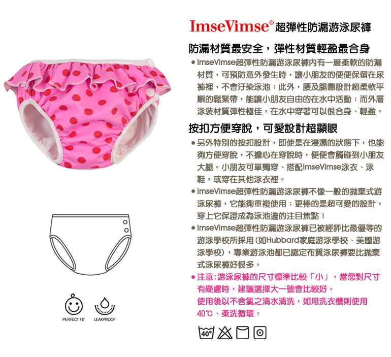 瑞典 ImseVimse超彈性防漏游泳尿褲(粉紅點點)