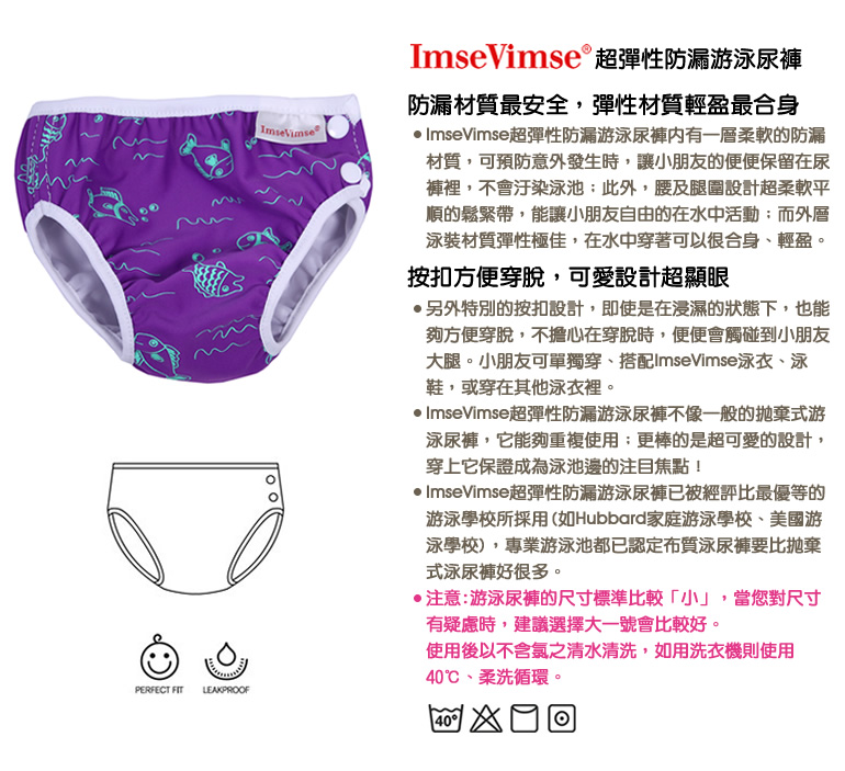瑞典 ImseVimse超彈性防漏游泳尿褲(紫色小魚)