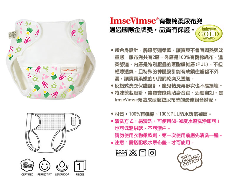 特殊剪裁設計,讓寶寶能夠貼身合宜、活動自如,是ImseVimse預裁成型棉絨尿布墊的最佳組合搭配。
