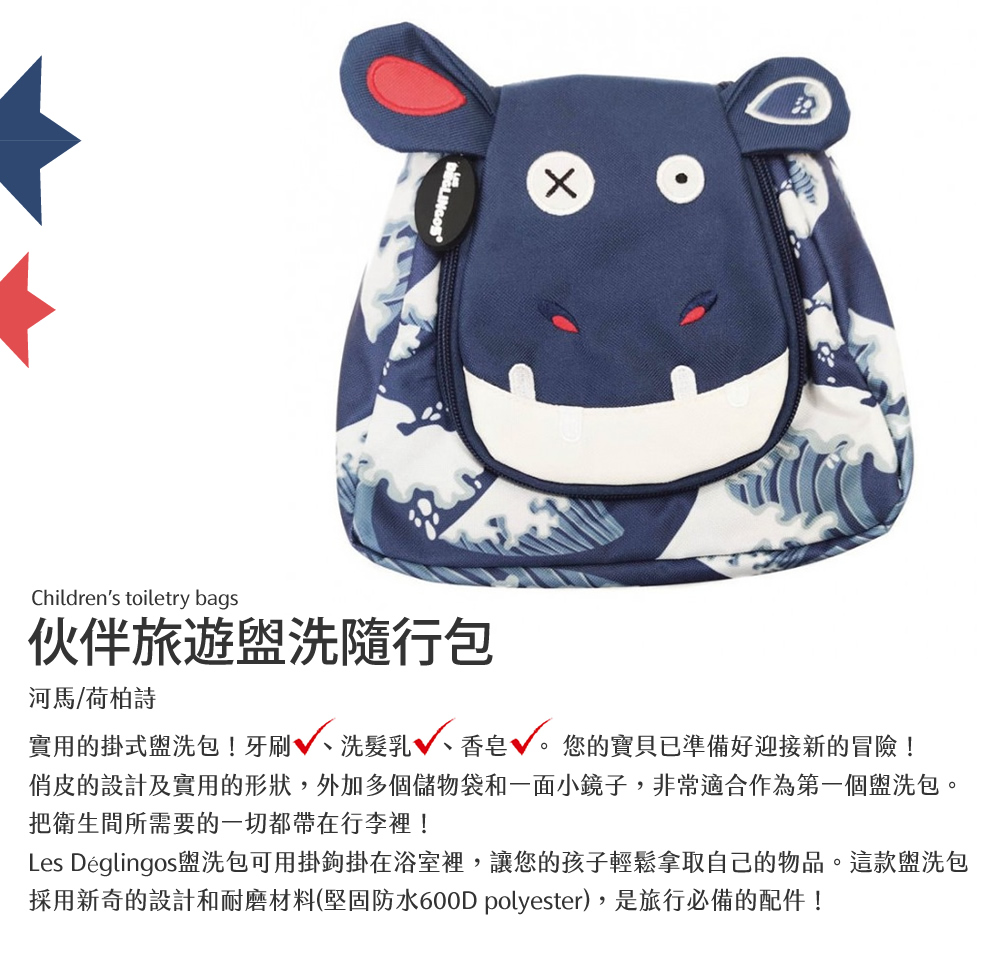 法國Les Deglingos-伙伴旅遊盥洗隨行包(河馬/荷柏詩)
