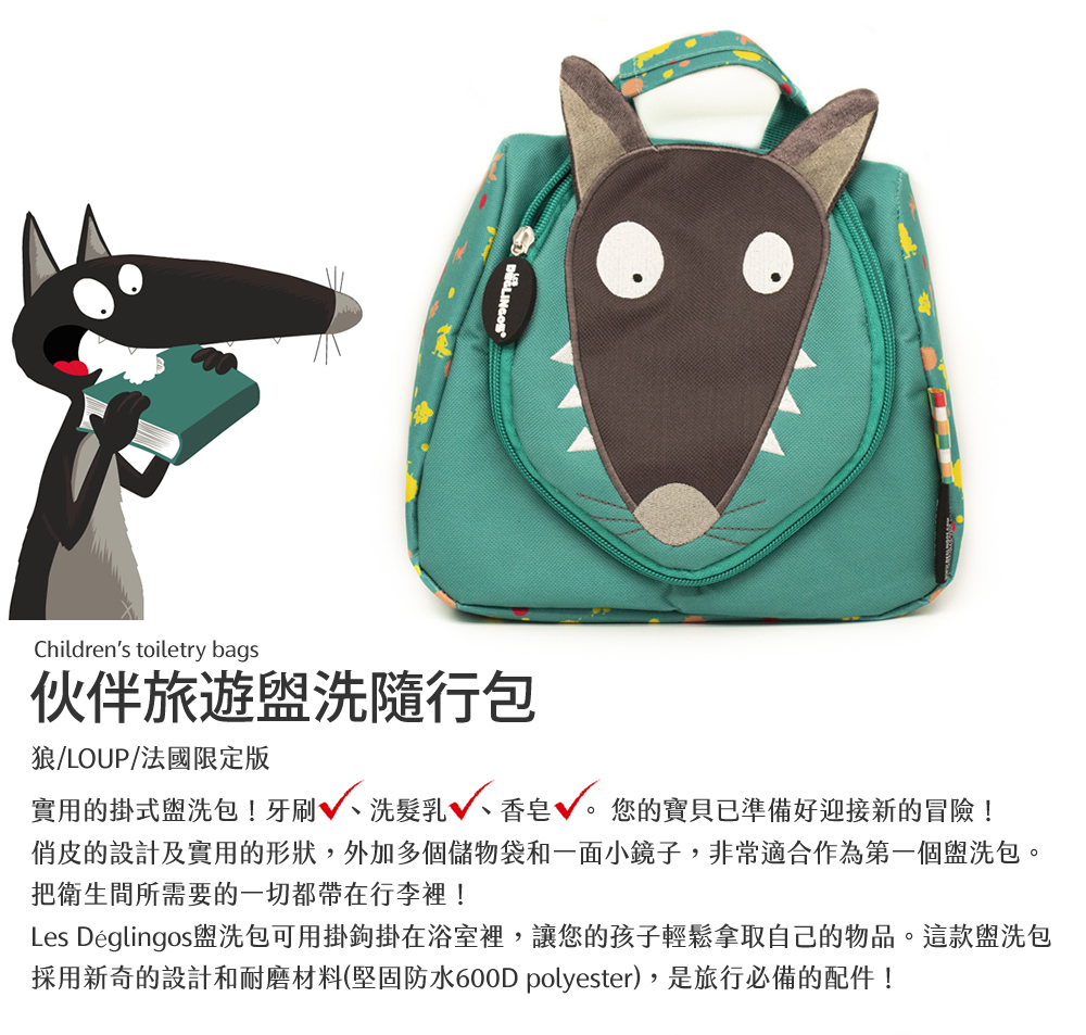 法國Les Deglingos-伙伴旅遊盥洗隨行包(狼/LOUP/法國限定版)