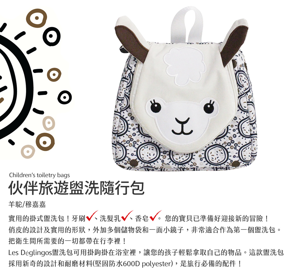 法國Les Deglingos-伙伴旅遊盥洗隨行包(羊駝/穆嘉嘉)