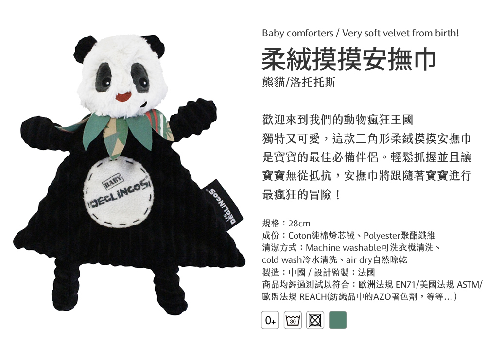 法國Les Deglingos-柔絨摸摸安撫巾(熊貓/洛托托斯)