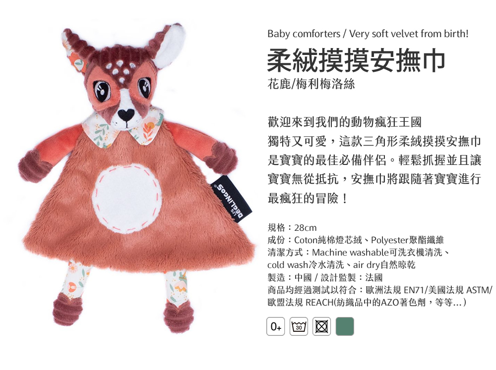 法國Les Deglingos-柔絨摸摸安撫巾(花鹿/‌梅利梅洛絲‌)