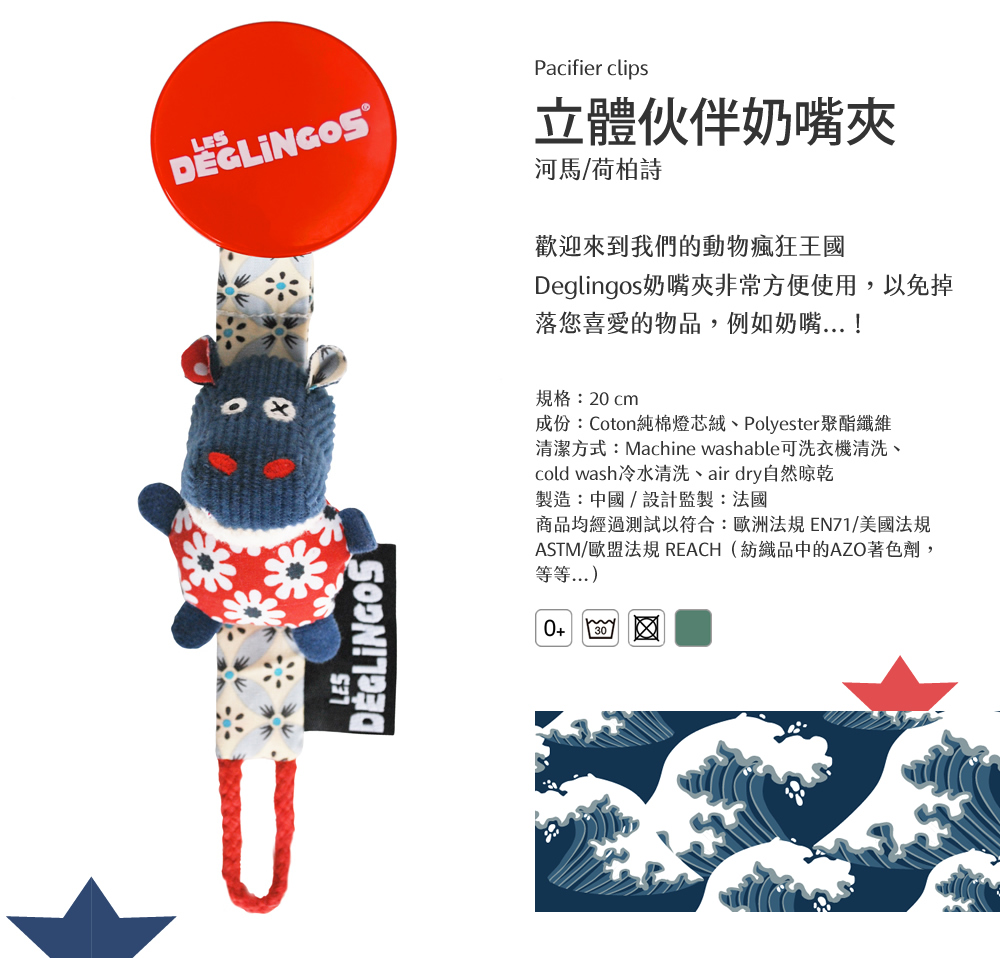 法國Les Deglingos-立體伙伴奶嘴夾(河馬/荷柏詩)