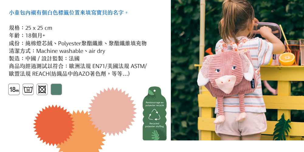 商品均經過測試以符合:歐洲法規 EN71/美國法規 ASTM/歐盟法規 REACH(紡織品中的AZO著色劑,等等...)