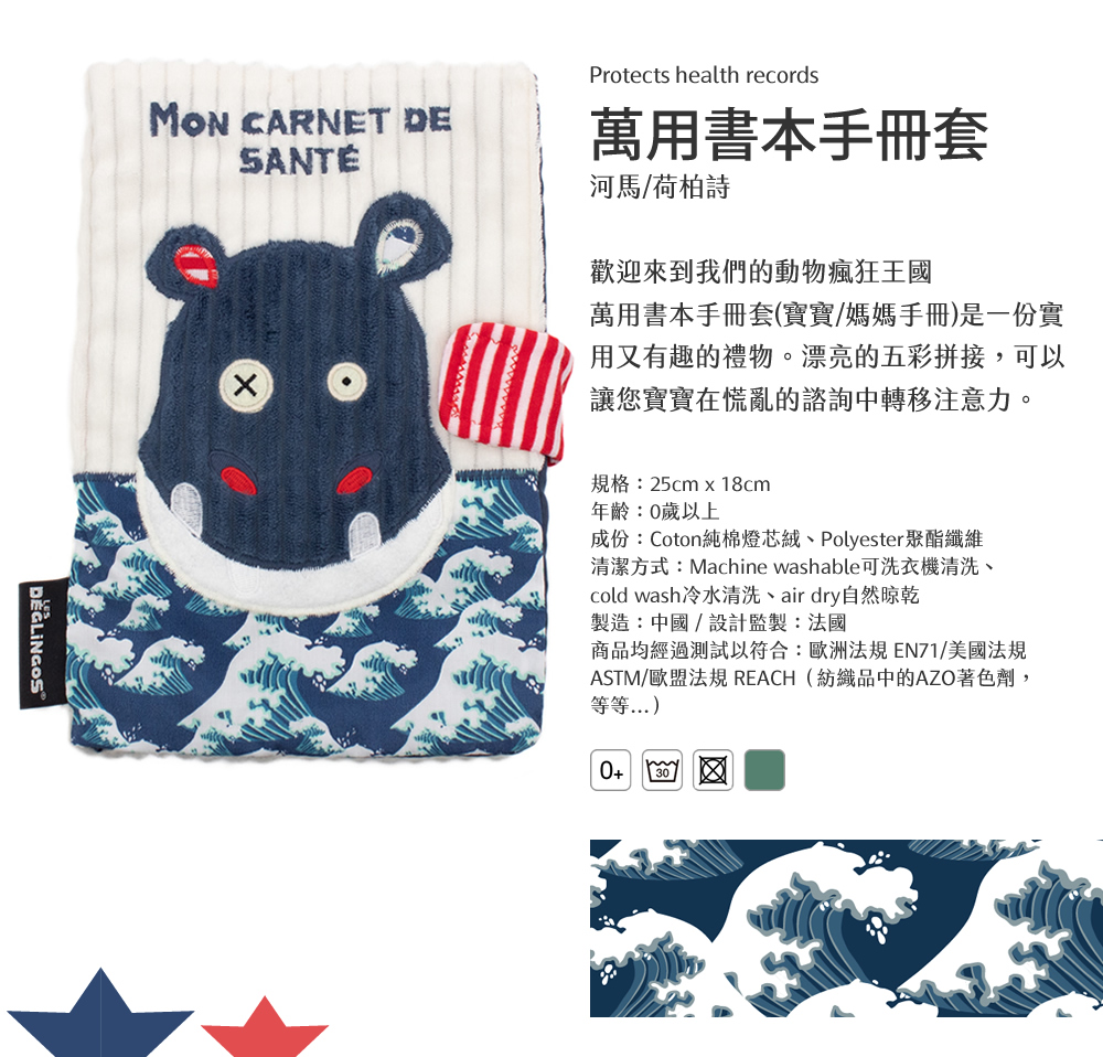 法國Les Deglingos-萬用書本手冊套(河馬/荷柏詩)