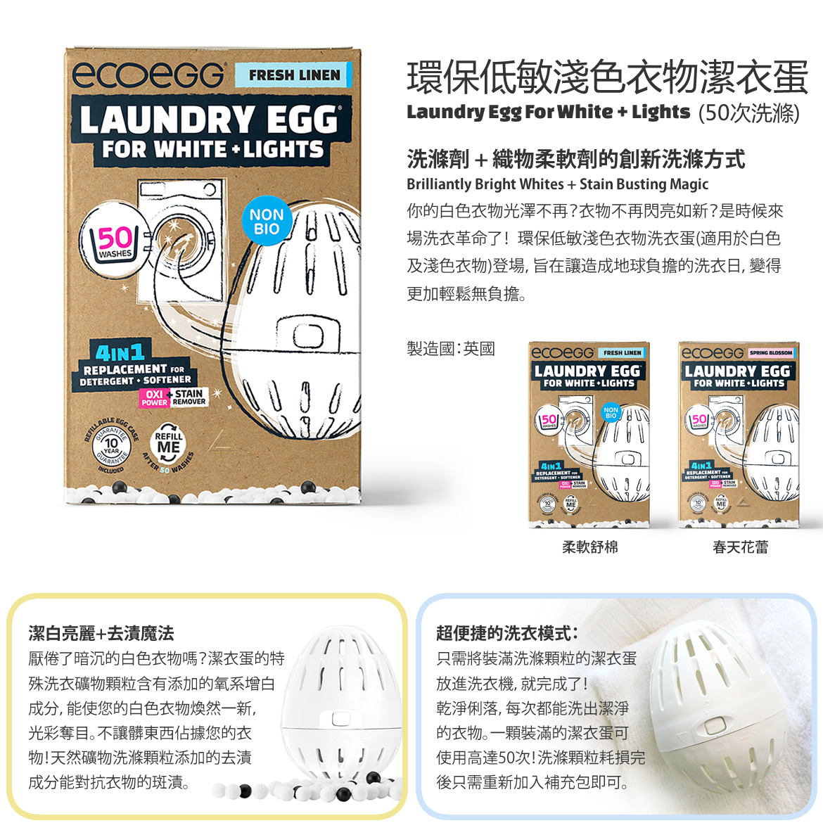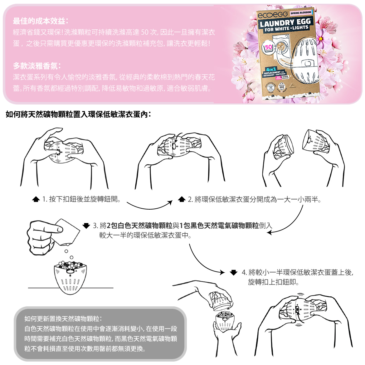 英國ECOEGG-環保低敏淺色衣物潔衣蛋(50次/粉紅春天花蕾)